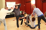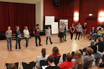 Yasmina Ouakidi stellt unterschiedliche Übungen aus verschiedenen Phasen der Theaterpraxis vor. In einem Schnelldurchlauf erfahren die Teilnehmer mit Wahrnehmungs-, Vertrauens- und Lockerungsübungen den Mut zum Spiel. Bewegungs-, Schauspiel- und Improvisationstraining sind ebenso Thema wie die kreative und spielerische Auseinandersetzung mit den Inhalten. Das An- und Abspielpotpourri wird zum gemeinsamen Theater.