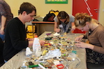 Bei der Zwergenwerkstatt Potsdam mit Anja Laterne steht sinnliches Begreifen im Vordergrund. Ihre pädagogischen Ansätze werden anhand ihrer Projekte vorgestellt. Phantasie-Insekten entstehen, deren Schönheit normalerweise nur im Mikroskop zu entdecken wäre. Es entsteht eine Installation musealen Ausmaßes im Mikrokosmos Baum.